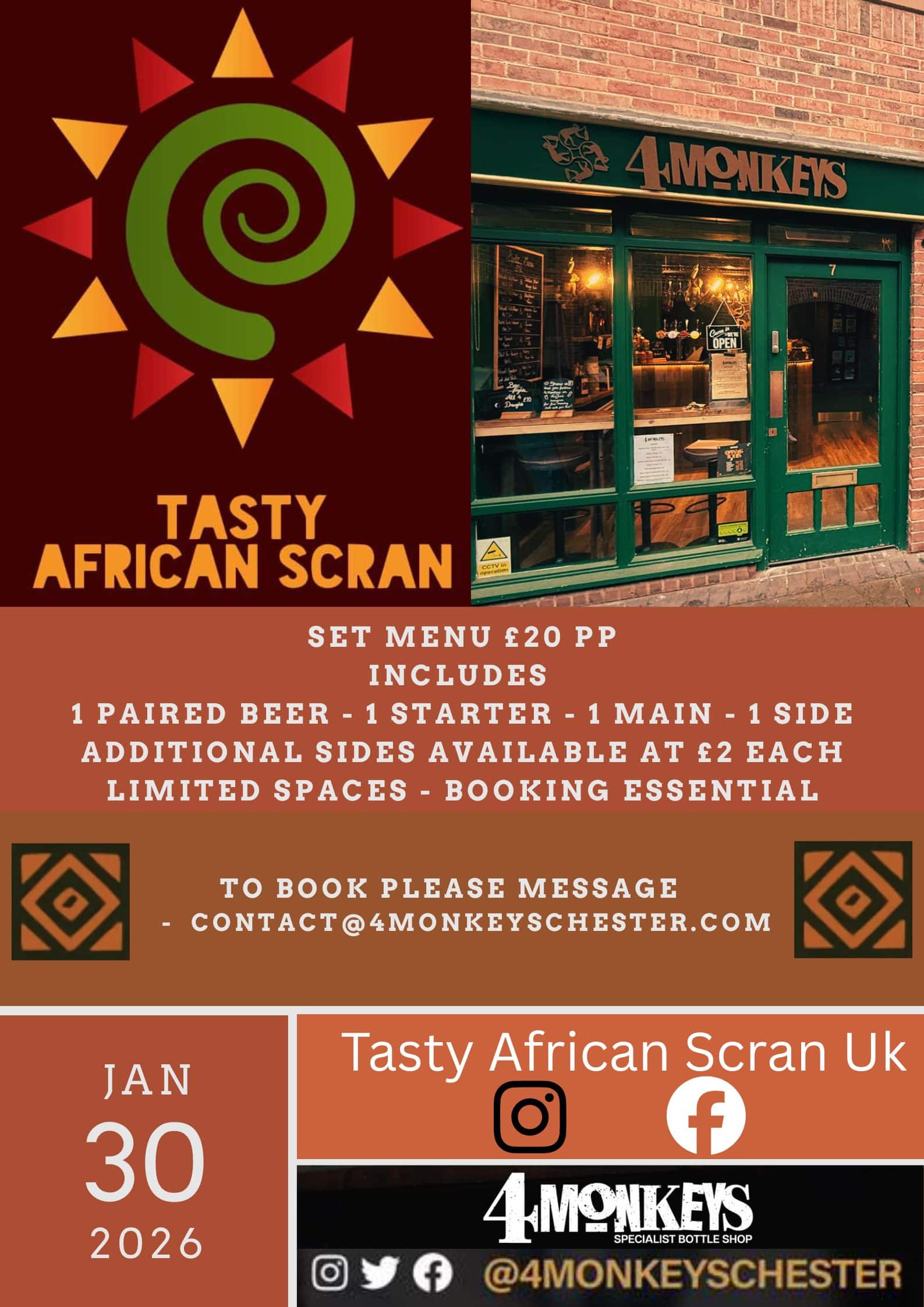 Enjoy an African Curry night on Friday 30 January.