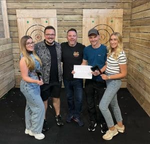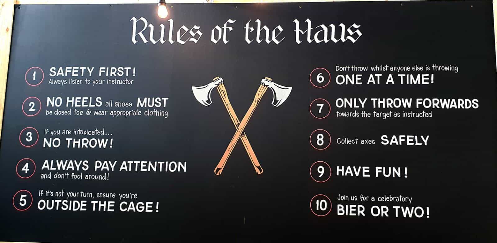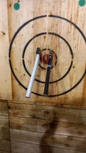After a brief safety speech the fun of axe throwing can get underway under the watchful guidance of the friendly Axt Haus team.