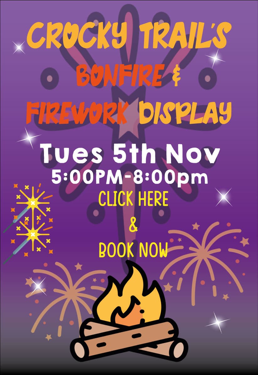 Get set for Bonfire Night at The Crocky Trail and a night filled with dazzling fireworks, a roaring bonfire and your favourite attractions.