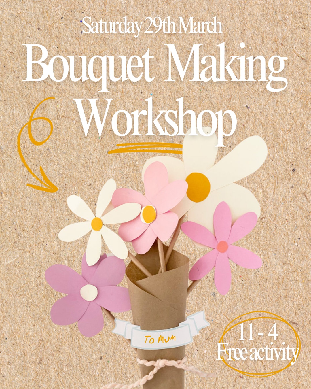 Make a paper flower bouquet with this fun Bouquet Making workshop on Saturday 29 March, perfect for the amazing mum, mother figure or someone special in your life.