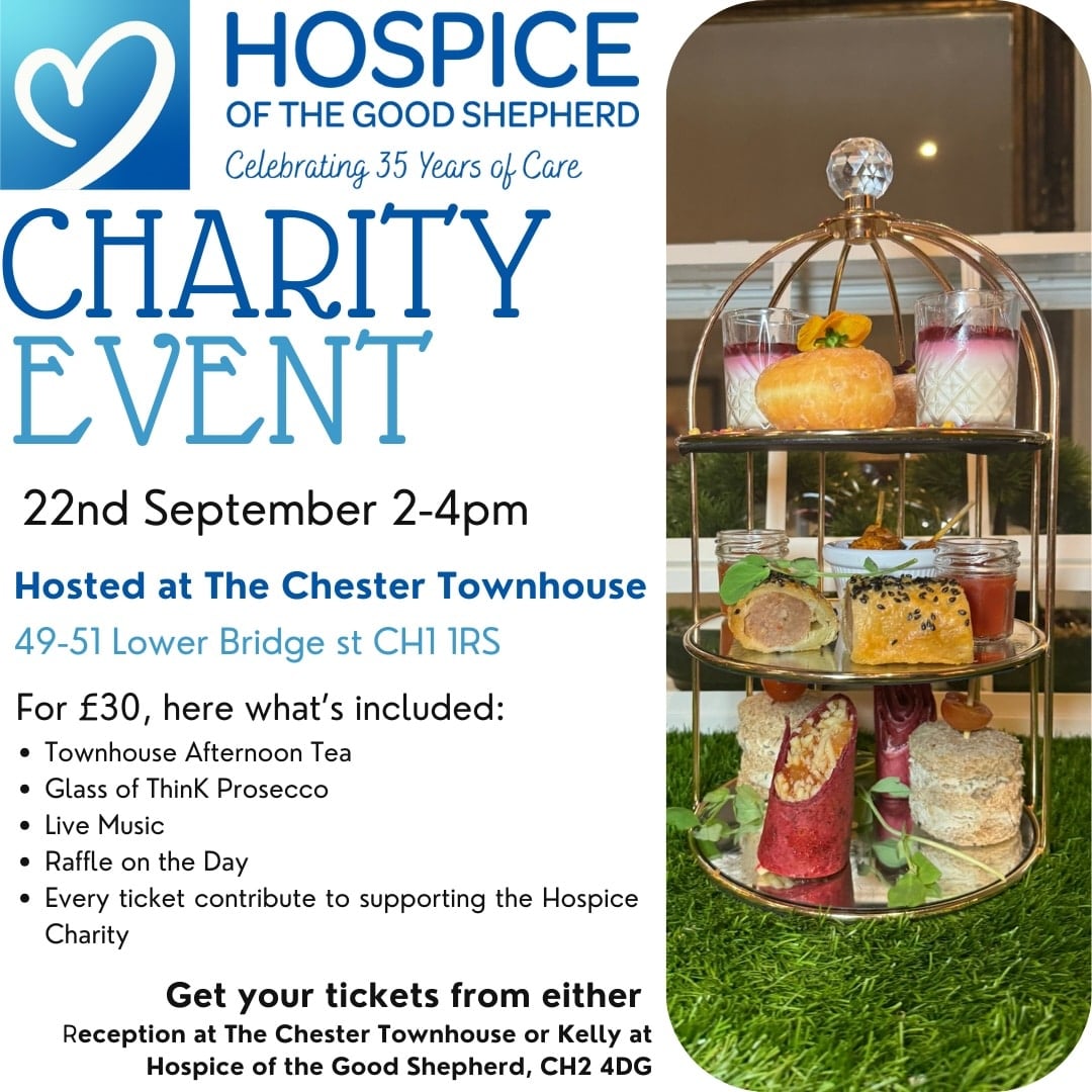 Join The Chester Townhouse for a sparkling Afternoon Tea in aid of the hospice.