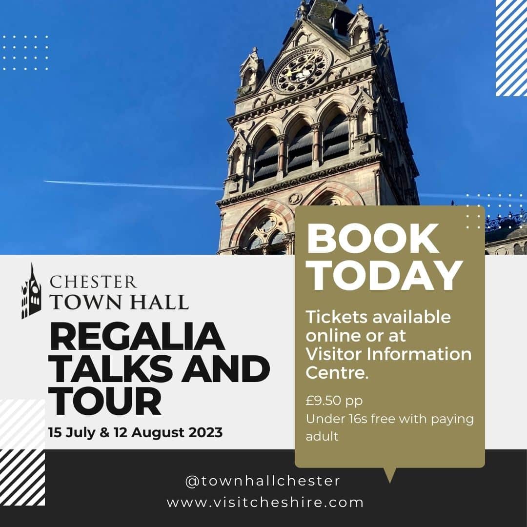On Saturday 12 August, members of the public can enjoy a tour led by the Town Hall Keeper and get to know more about the history of Chester Town Hall; from it’s opening in 1869, right up to modern day uses and events. The tour will culminate with a civic regalia talk led by the Lord Mayor’s Attendant, providing you the opportunity to get up close to these unique treasures whilst learning about the history of the Lord Mayor and why they have a Sword and Mace.