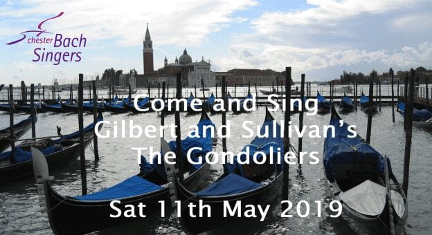 It’s been a while since Chester Bach Singers trod the boards with G & S but they invite you to swell the chorus as Gondoliers or Contadine in one of the duo’s most tuneful creations. Italian opera joins with farce in this story of one of two babies stolen in infancy who may (or may not, it turns out) be a King – but which of the brothers is it? Dance a Cachucha with members of CBS, who will also delight again as soloists, and narrate the story, with Catherine Barnett conjuring up Venetian magic from the piano as Martin Bussey aims to make sure you catch the last park-and-ride gondola.