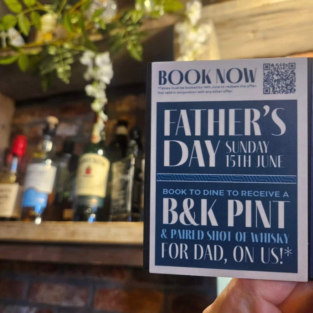 Book a table to dine at Brewhouse & Kitchen on Father’s Day and your Dad gets a complimentary whisky.