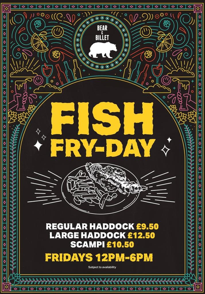 Enjoy a delicious fish meal every Friday between 12 - 6 pm.