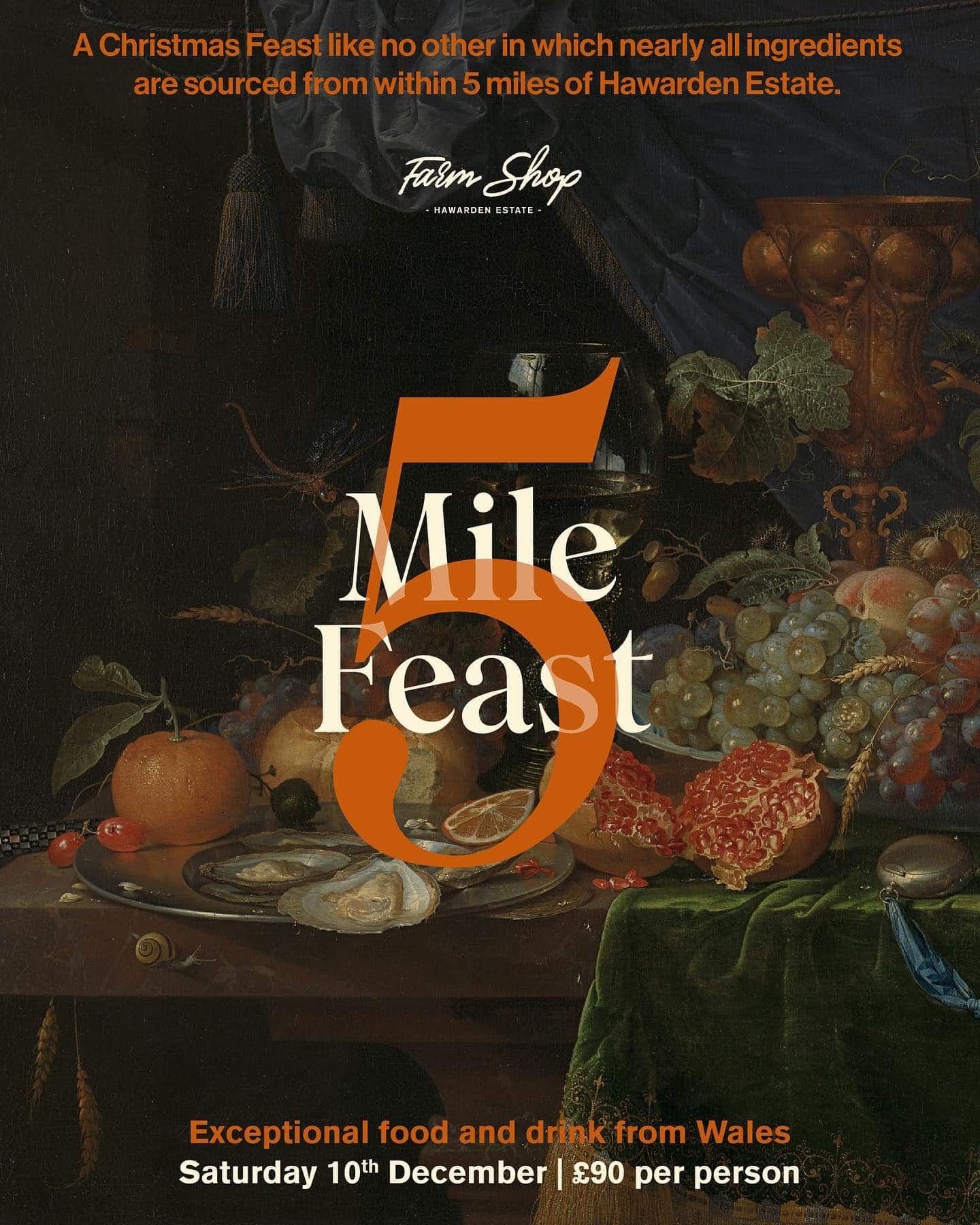 Join Hawarden Estate Farm Shop on Saturday 10 December for a Christmas feast like no other, in which nearly all ingredients are sourced from within 5 miles of Hawarden Estate.