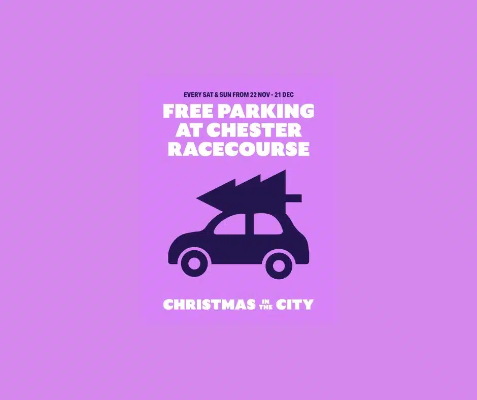 This festive season you can enjoy FREE PARKING at Chester Racecourse every Saturday and Sunday starting on Saturday 22 November. Free parking is from 10 am every Saturday and Sunday until 21 December with the last entry at 6 pm.