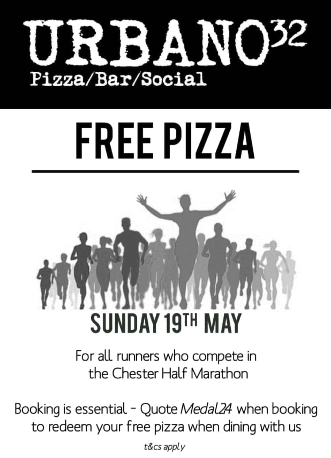 Urbano32 is a pizza restaurant, bar & social meeting place and just the place to celebrate your Half Marathon success with free pizza!