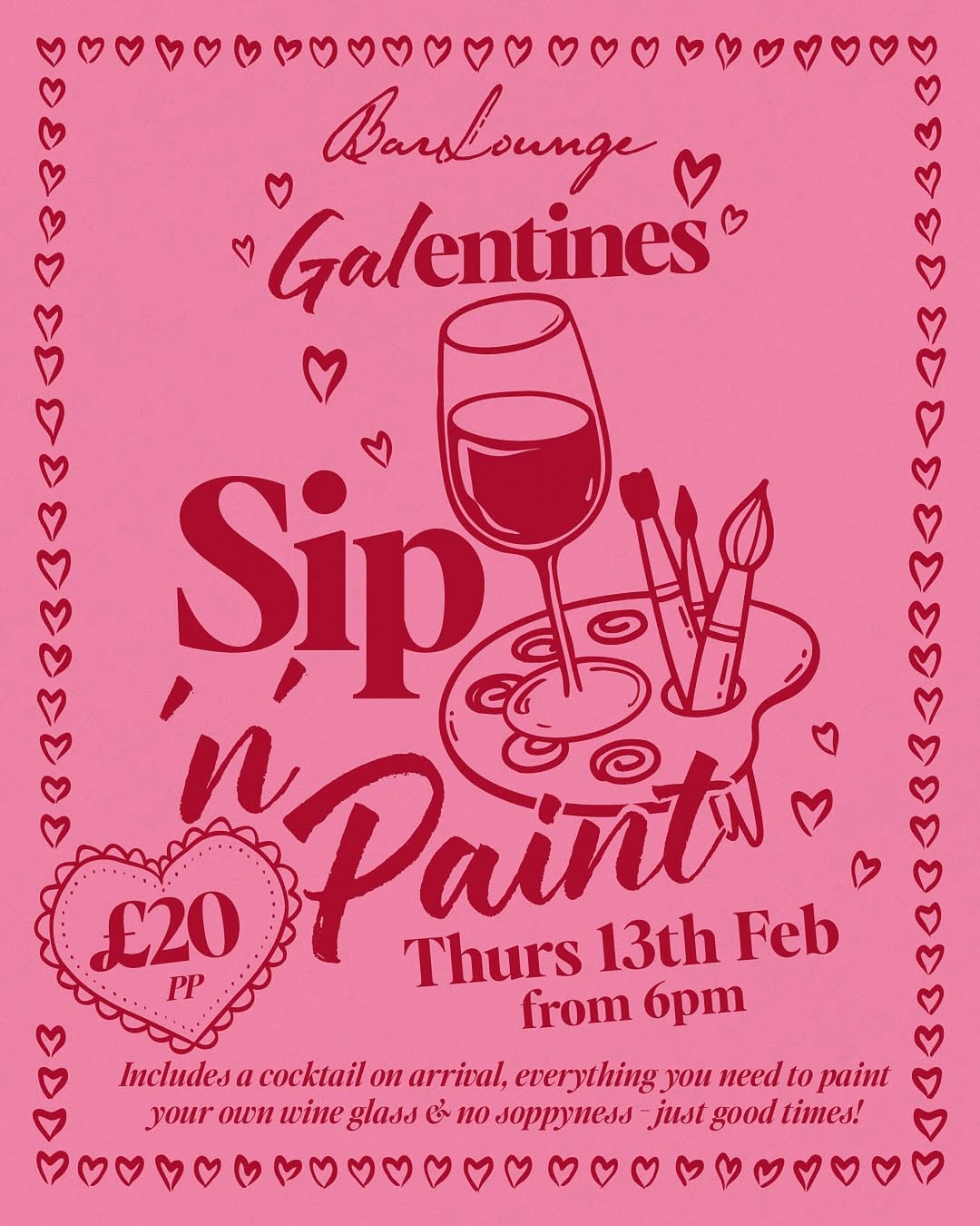 Join BarLounge for a Galentines night on Thursday 13 February. Bring your bestie and enjoy some gal time as you sip 'n' paint.