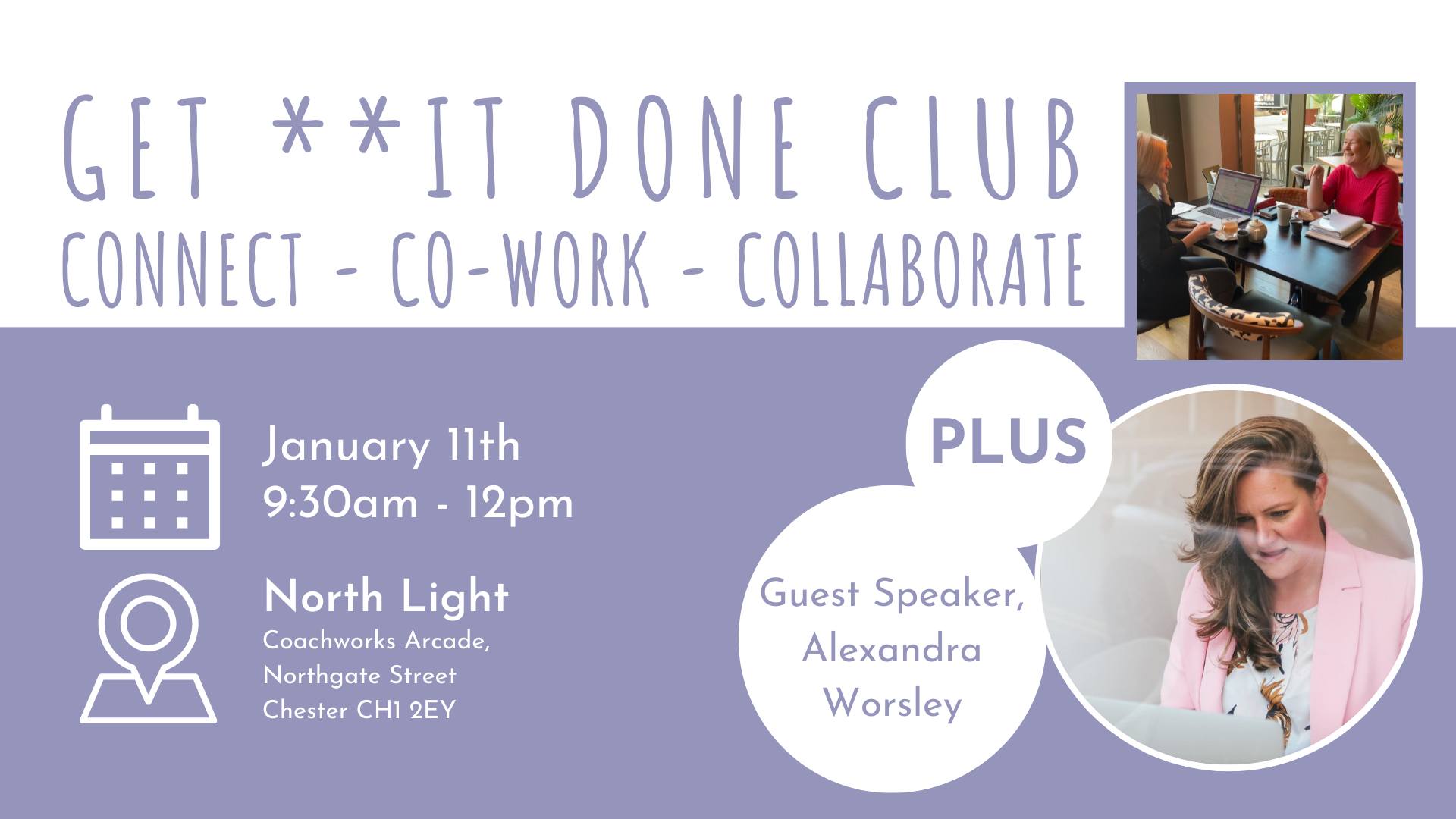 Join North Light for the first event of the year, at the GET **IT DONE CLUB on Thursday 11 January. This event is a unique mix of connection, collaboration, and co-working, creating the perfect environment for those in business to come together, tackle their to-do lists, and enjoy the best coffee and cake! North Light offers a vibrant and inspiring setting to ignite your productivity. Whether you're an entrepreneur, freelancer, or simply seeking motivation, GET **IT DONE CLUB is for you. It’s not just about work; fuel your productivity with both delightful refreshments and the energy of a supportive community; connecting and networking with other like-minded attendees. Share your ideas, experiences, and insights in an environment that fosters collaboration. Whether you're a seasoned entrepreneur, a freelancer, or someone seeking a motivational boost, the GET **IT DONE CLUB welcomes you. Together, embrace the power of community and support, and GET **IT DONE! GET **IT DONE CLUB isn't just an event; it's a commitment to tangible progress and taking steps toward your aspirations. Join North Light for a morning that promises connection, collaboration, and the satisfaction of making strides toward your goals.