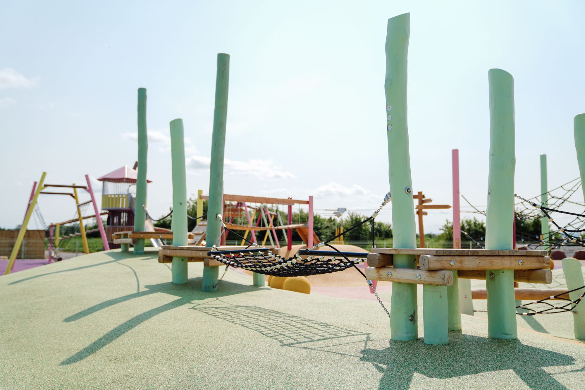 For older children and thrill-seekers, the twin zip lines of Flavour Rush offer high-flying excitement, while Mint Marshlands provides a balance-testing challenge with wobbly bridges and playful pathways.