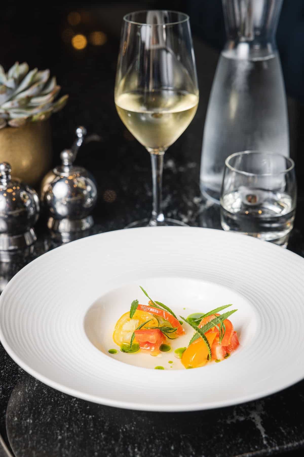 The restaurant's interior is reminiscent of a traditional brasserie and decorated in gold and teal tones. The impressive Champagne bar takes centre stage in the restaurant, serving everything from Cappuccinos to Cosmopolitans and an exquisite selection of wines and Champagne.