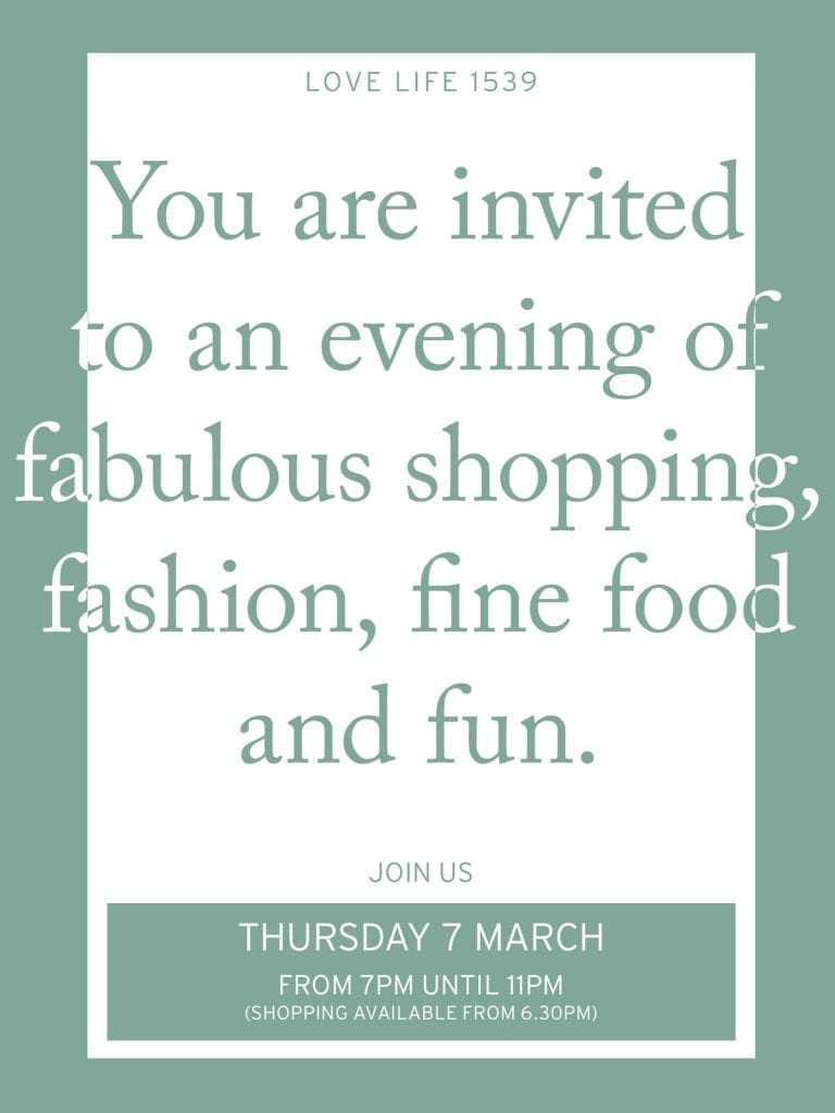 The evening starts with shopping from 6.30pm, followed by a fizz reception, two-course dinner and a glass of wine.