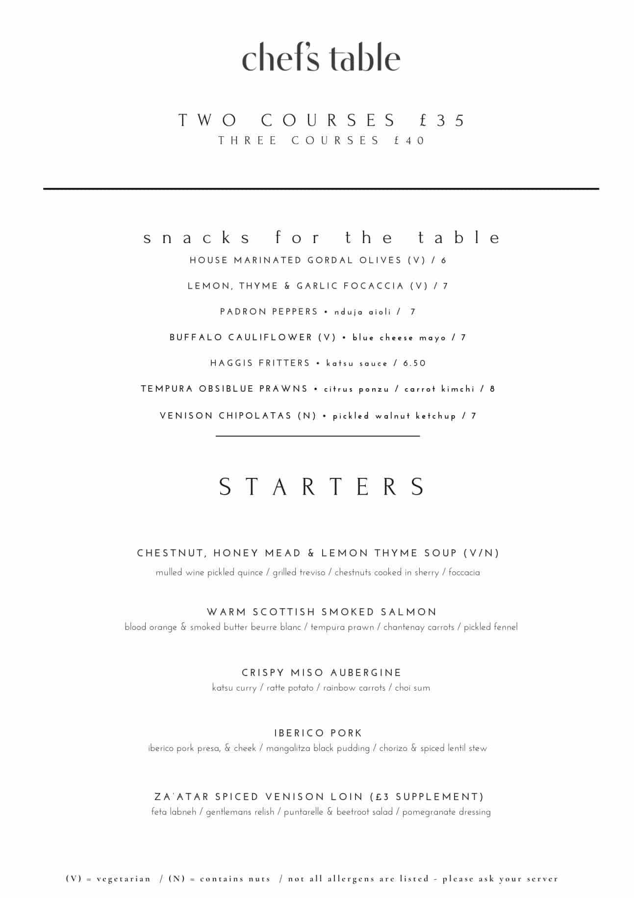 Enjoy fabulous options at incredible value with the Chef's Table lunch offer, which is available alongside the a la carte menu during every lunch service, including Sundays when you'll find the addition of a classic roast with all the trimmings.