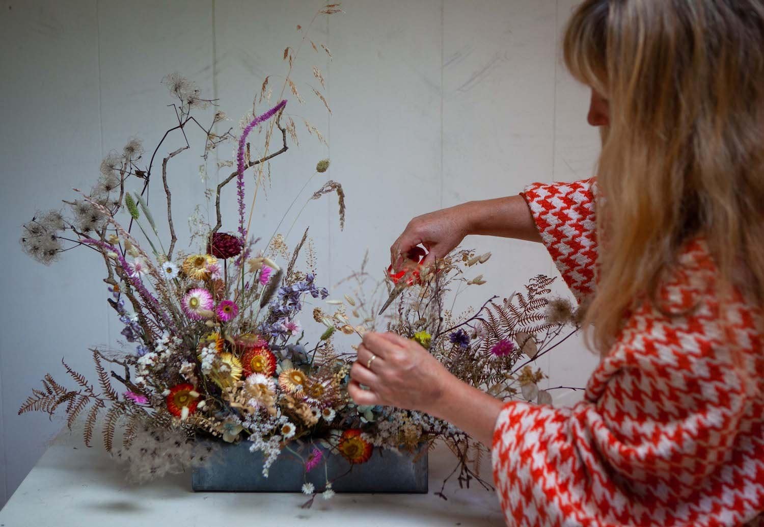 In this class, Layla will demonstrate the process of how to design and create a stunning artistic sustainable table decoration, from everlasting flowers and foliage. She will then work with you so you can create your own artistic design using the selection of glorious organic foraged and garden grown dried flowers and materials that she has brought with her for your use.