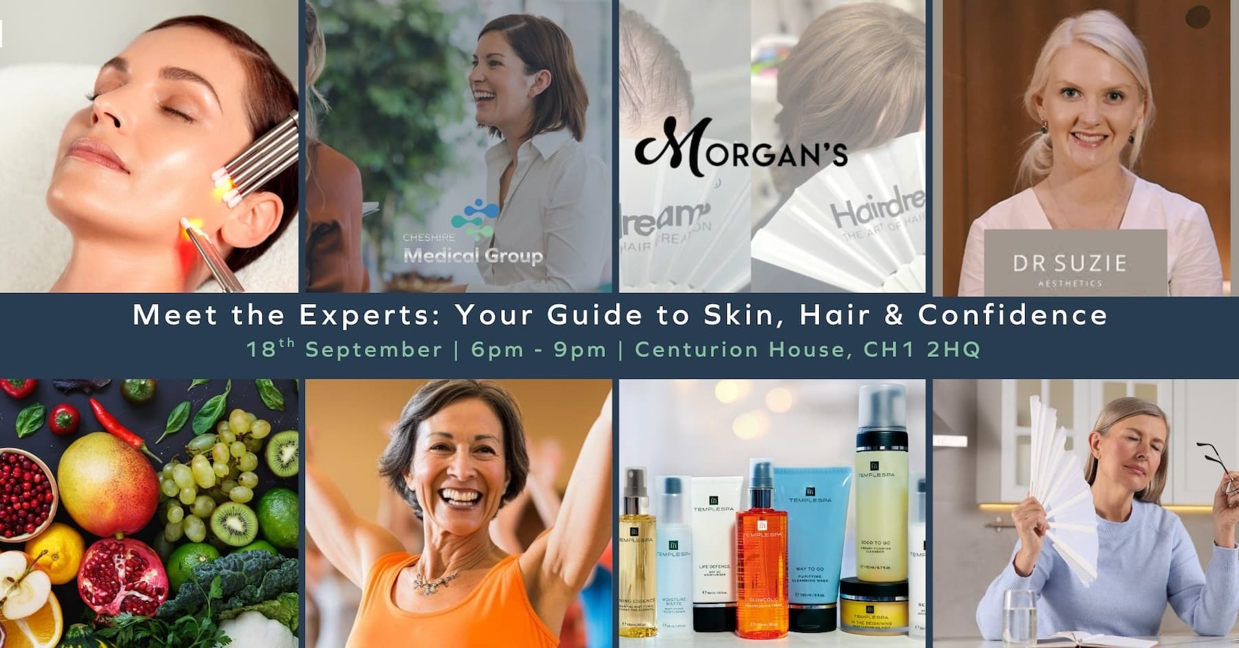 Join Your Chester Spa, Morgans Hair Loss Solutions, Your Chester GP, Dr Susan McBride, Facial Aesthetics & Dietician for an exclusive evening with leading experts in hair, skin and wellness.
