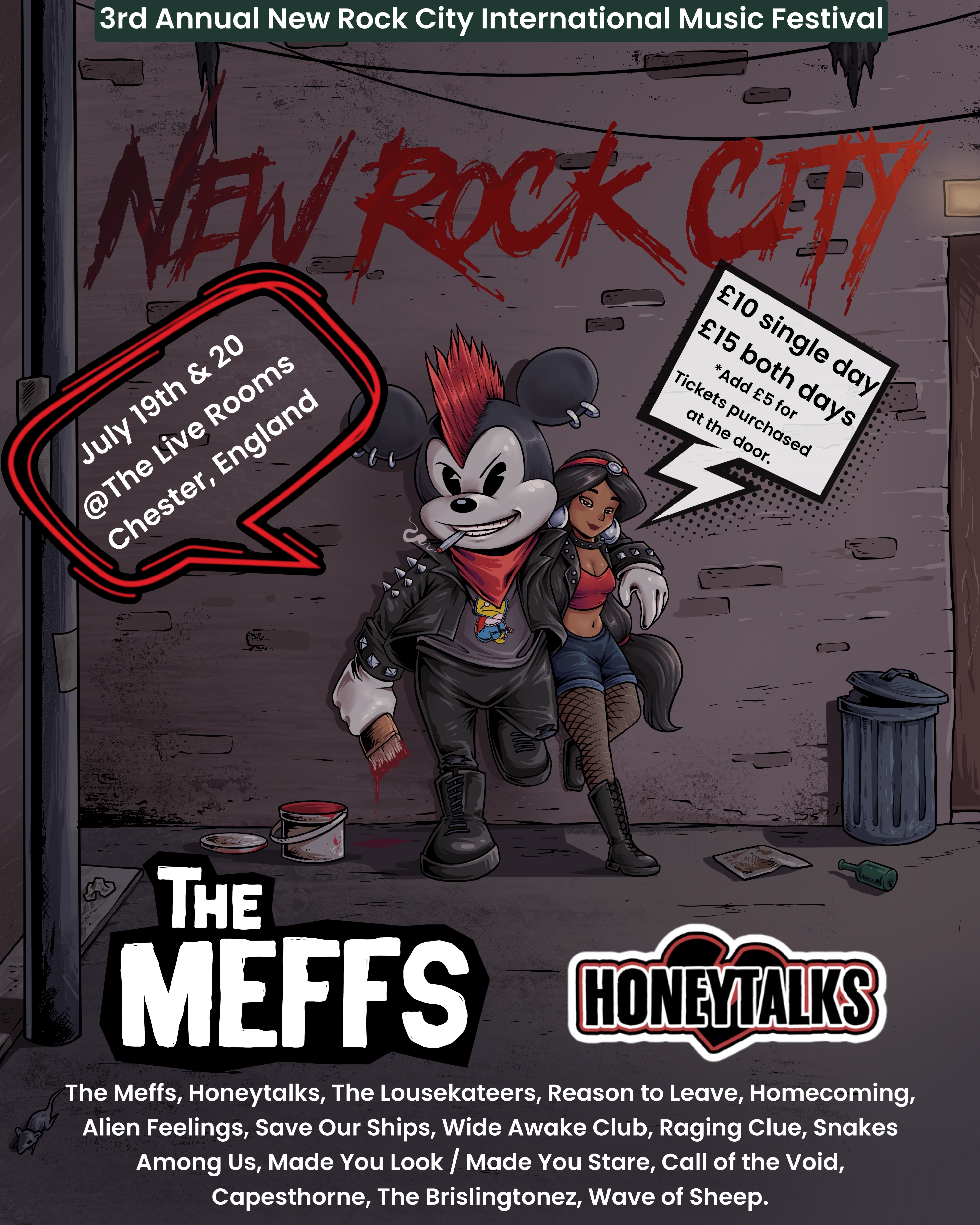 New Rock City Punk Weekender is back! With headliners THE MEFFS and HONEYTALKS.