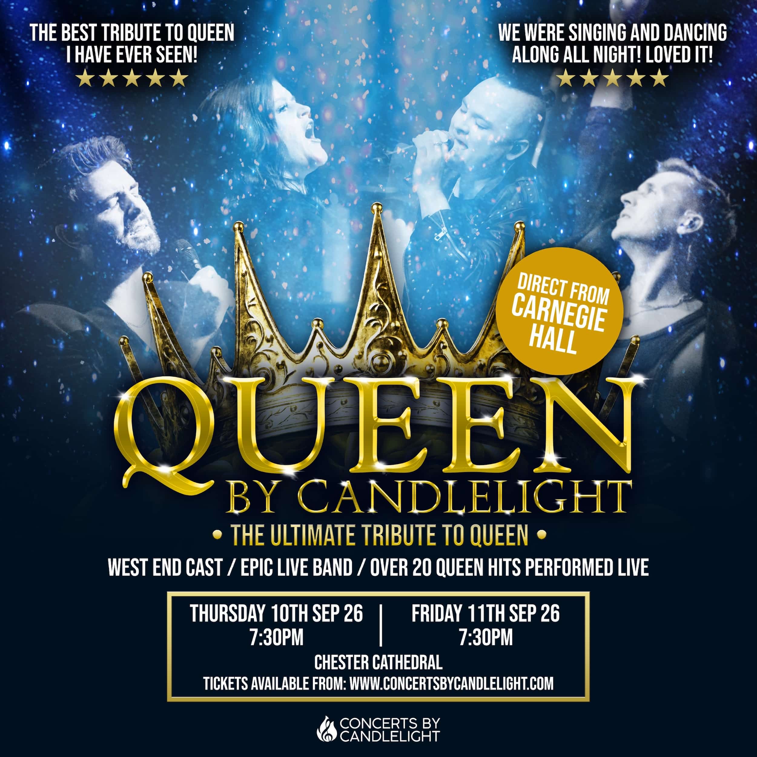 Following sold-out performances at New York’s iconic Carnegie Hall and the legendary London Palladium, experience an unforgettable evening of Queen’s greatest anthems, performed live by candlelight at the beautiful Chester Cathedral.