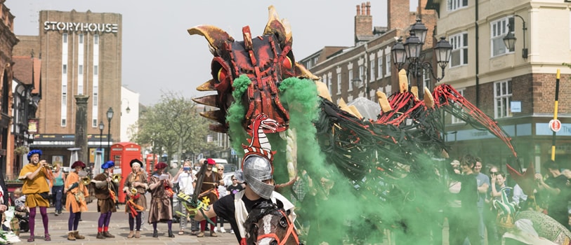 Chester is once more on the lookout, following reports of a fire breathing dragon heading to the city. On Sunday 23 April, Chester will be celebrating St George's Day with the welcome return of St George to slay the dragon and save the princess in a street performance with local school children.