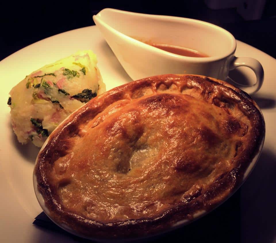 Enjoy a selection of fantastic home made pies, including mash, greens and gravy. Each pie comes with a drink of either Guinness, Fosters or a small house wine on the house!