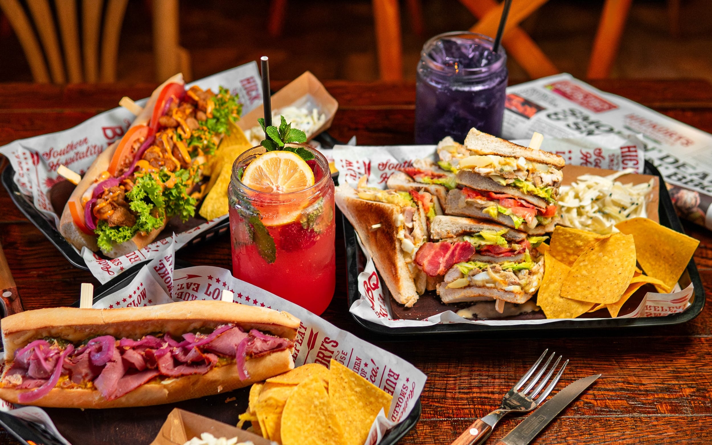 Looking for a perfect quick lunch? Dive into the Sub ‘n’ Soda deal. Enjoy a Hickory's Smokehouse Smoked Chicken Club, zesty Shrimp Po’Boy, classic Pastrami & Pickle Toasted Sub or one of the classic Hickory’s or Chicken Burger with a homemade soda for just £11.99.