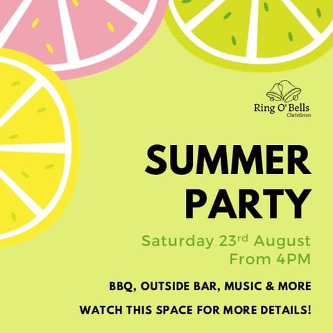 Come and join Ring O'Bells for their Summer Party on Saturday 23 August.