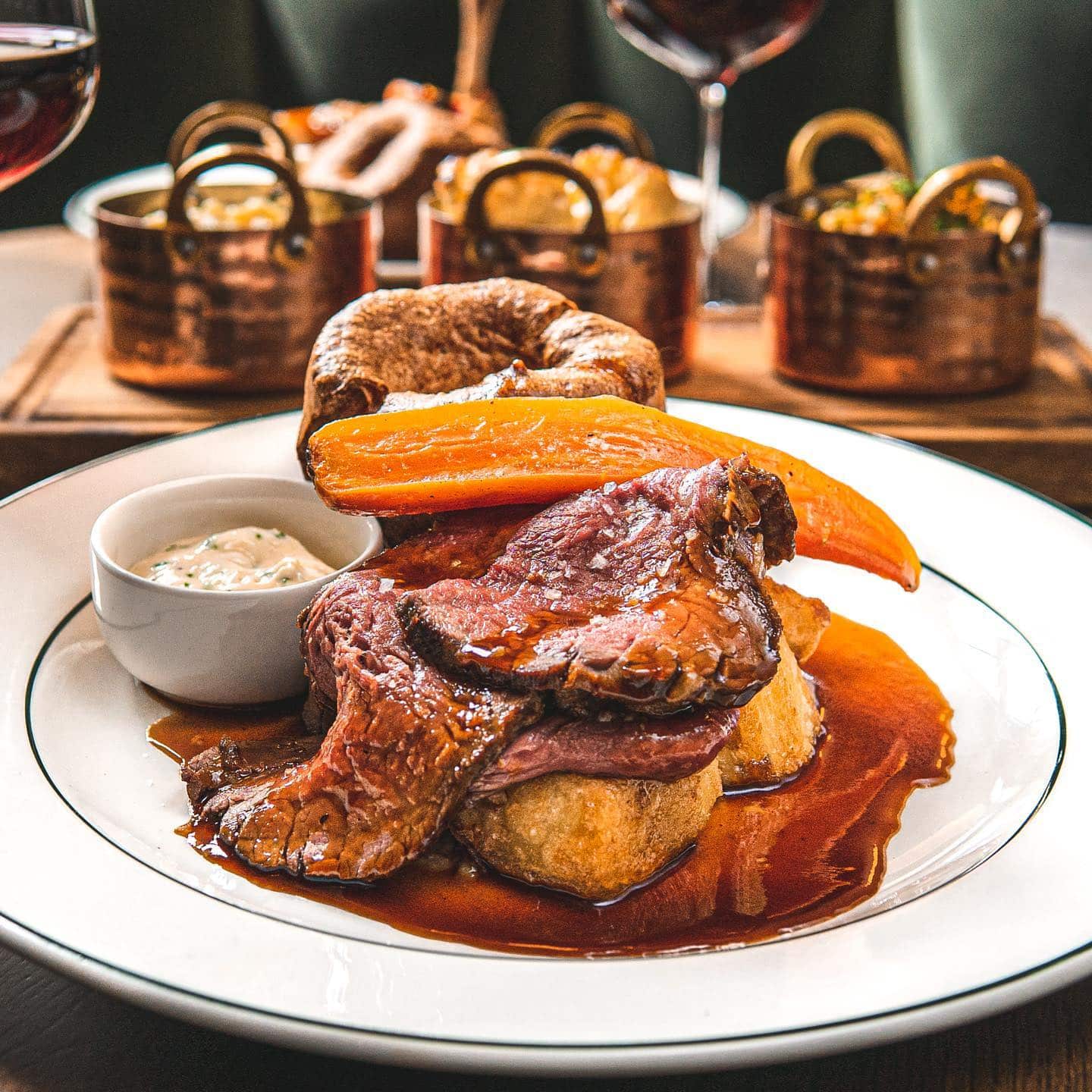 Sunday Roasts are served all day, every Sunday with a choice of Sirloin of Beef or Shires Farm Herb-Fed Chicken.