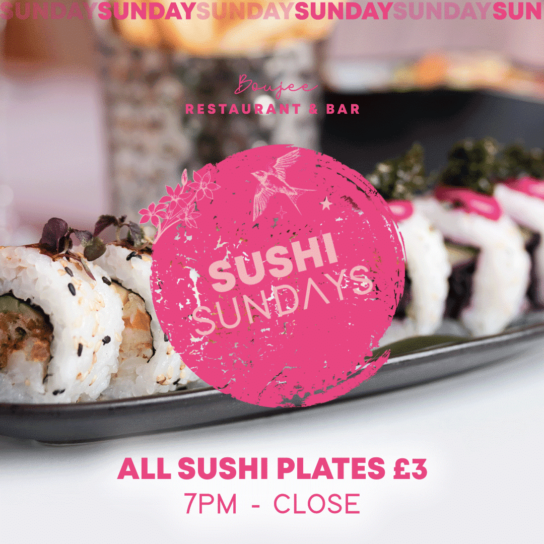 It's Sunday Funday at Boujee Restaurant & Bar after 7 pm when all Sushi plates are £3.