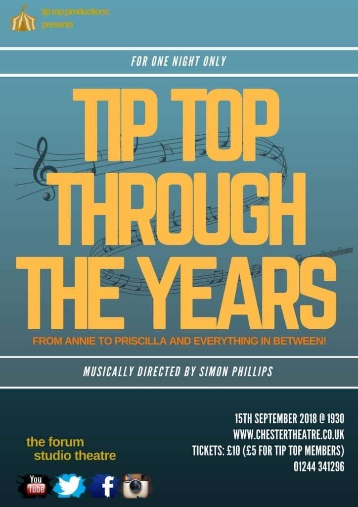 A concert taking us through and celebrating the many years of Tip Top! There will be performances by some of our most talented members, led by Simon Phillips, from some of our most successful and memorable productions to date.