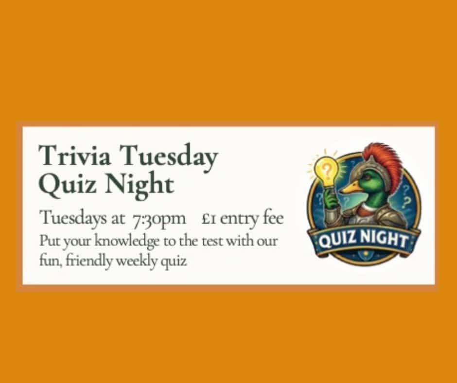 Why not have a meal before and fuel your brain before the quiz starts.