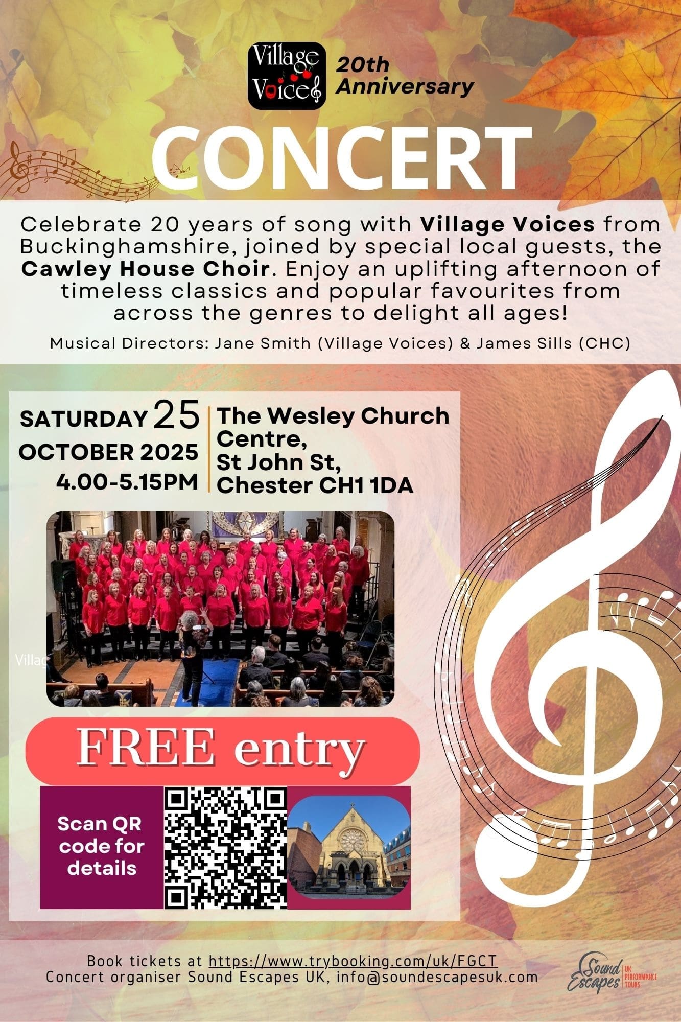 Celebrate twenty years of song with Village Voices from Buckinhamshire, joined by special local guests, the Cawley House Choir.