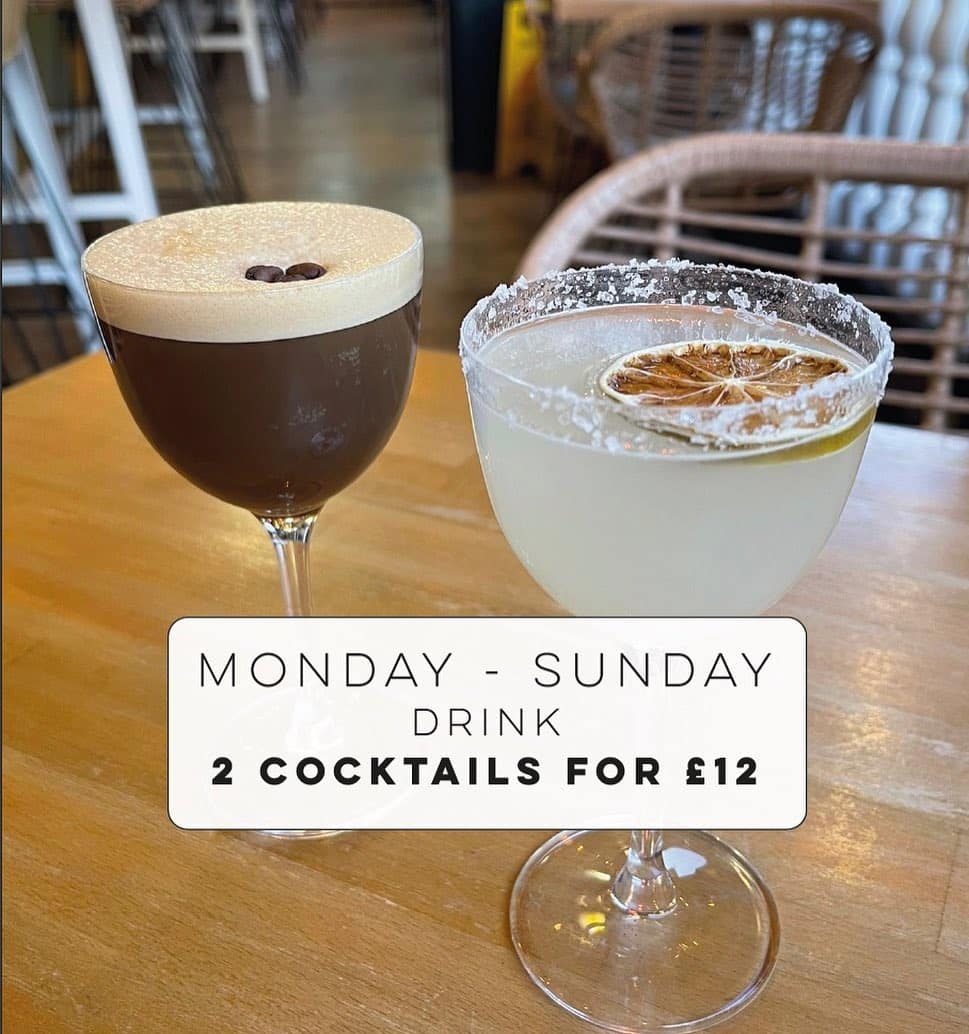 Enjoy two cocktails for only £12 from Monday - Sunday.