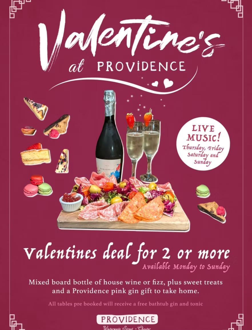 Providence Gin is a Gin Bar set on Chester's iconic Watergate Street in Providence House and is a gin lover's paradise for the perfect Valentine's Day.