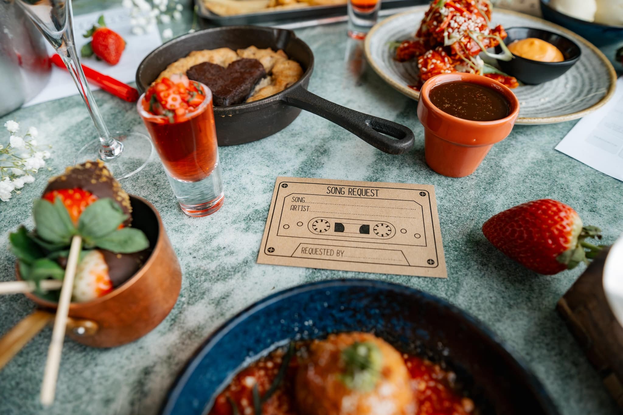 The Valentine’s sharing menu of dishes for two for £32.50 per person, includes a small plate of your choice, to nibble alongside our special Raspberry Rhapsody Mojito, our signature sharing kebab and our Valentine's Doughn't You Want Me Baby cookie-dough, complete with prosecco and raspberry jelly shots... (served with two spoons). Includes the limited edition 'Raspberry Rhapsody' cocktail each.