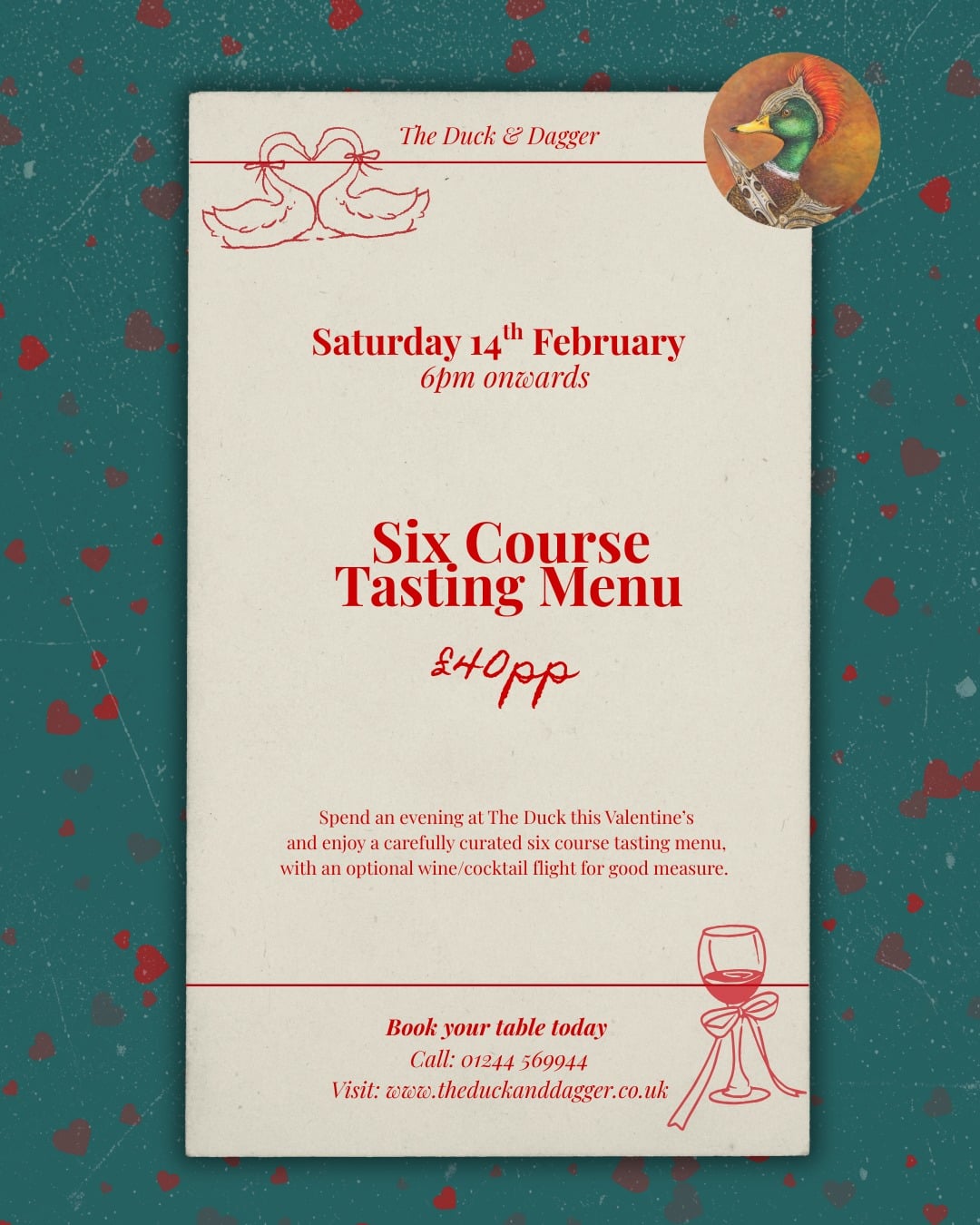 Celebrate Valentine’s Day at The Duck & Dagger with an elegant tasting menu created by head chef Matt.