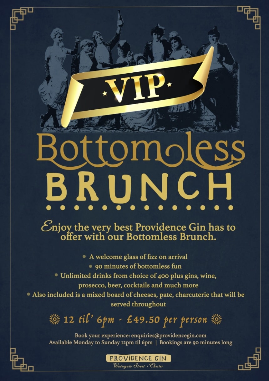 Experience a VIP Bottomless Brunch at Providence Gin, a Gin Bar set on Chester's iconic Watergate Street in Providence House and is a gin lover's paradise for the perfect Bottomless Brunch experience.